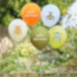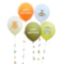 Giv dit Bug Party et farverigt touch med disse balloner med sjove ballonhaler! Perfekt til at skabe en legende atmosfære med naturtema. Hver pakke indeholder fem balloner med forskellige tryk.