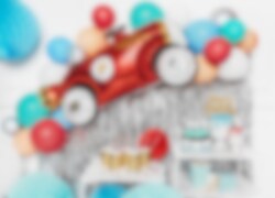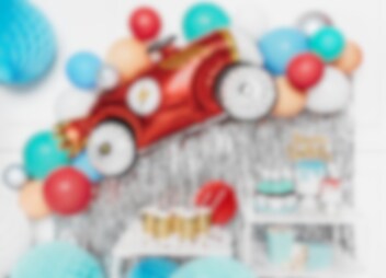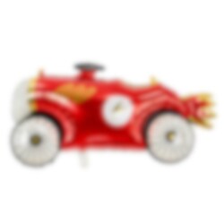 Stilfuld folieballon, der forestiller en super sej racerbil i farverne rød, sort og hvid og med guld- og sølv foliedetaljer. Den ultimative dekoration til bil temafest. Ballonen er ca. 93 x 48 cm stor og kan pustes op med almindelig luft eller helium.