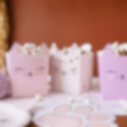 3 stk. snackbokse i lyserøde farver med fine motiver af katteansigter på ydersiden. Fyld disse bokse med snacks eller slik, når det er tid til en fødselsdagsfest med sjovt katte-tema. Bokserne er lavet af pap og er 10 x 14 cm store.