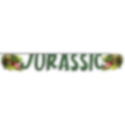 Stilfuld papguirlande, der danner ordet ''Jurassic'' i en mørkegrøn farve, og den har også 2 seje T-Rex-hoveder.