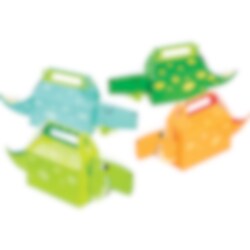 4 stk. festbokse der forestiller seje dinosaurer i forskellige farver. Saml boksene sammen, og fyld dem derefter med masser af slik og legetøj, og giv dem til vennerne som gave i løbet af festen. Festboksene er cirka 31 x 13 x 6 cm store, når de er samlet.