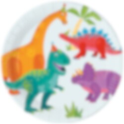 8 papptallerkener med farverige dinosauriemotiver, der gør borddækningen både legende og indbydende. De glade dinosaurer sammen med palmer og små partydetaljer skaber en dejlig feststemning, der passer godt til en sjov fødselsdag. Tallerkenerne er 23 cm i diameter og er fremstillet af FSC-certificeret papir.