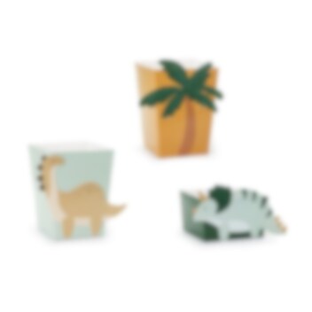 Gør børnefødselsdagen endnu mere spændende med disse seje snackbokse i dinosaur-tema. Hver pakke indeholder seks bokse i tre forskellige modeller, perfekte til at servere snacks, slik eller små overraskelser i til dine gæster. Størrelsen på boksene er 9,5 x 9,5 x 12 cm og 10 x 10 x 5 cm. Fremstillet af pap.