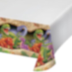 Stor dug med dinosaurere fra vores dinosaur-tema.Gør bordet ekstra flot med denne dug med dinosaurere på. Det beskytter også bordet mod gæsternes krummer og spild. Dugen er lavet af plastik og er ca 137 x 274 cm.