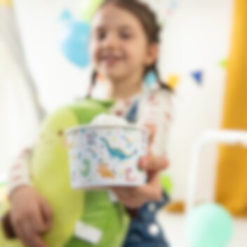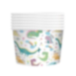 6 stk. små isbægre i smukke farver med søde motiver af forskellige dinosaurer. Bægrene er perfekte til at servere is, slik, snacks eller andre lækkerier. De rummer 150 ml og har en størrelse på 6 × 7 cm. Lavet af pap.