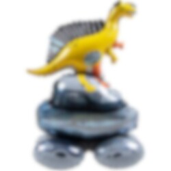 Denne stående folieballon formet som en farverig dinosaur er en fantastisk dekoration til fødselsdagsfester, især for dem der elsker dinosaurer.