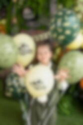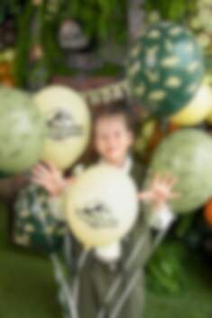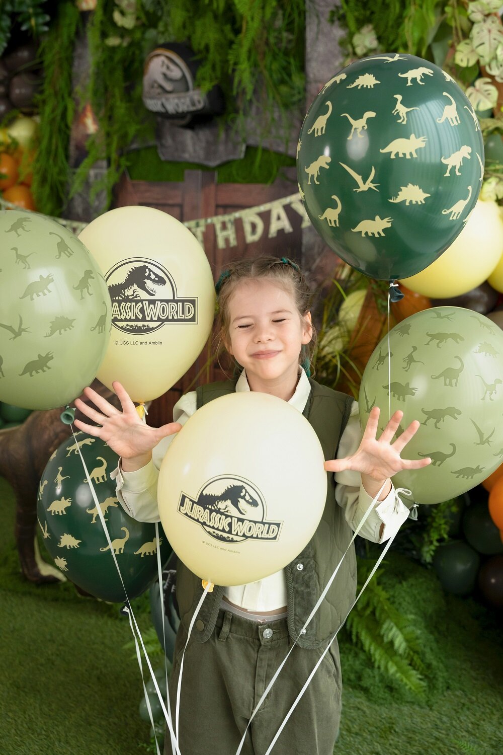 Væk liv i fortidens mægtige dinosaurer og skab en uforglemmelig fødselsdagsoplevelse med disse spændende Jurassic World-balloner! Denne pakke indeholder 6 balloner med et mix af designs: nogle er prydet med den ikoniske Jurassic World-logo, mens andre har detaljerede silhuetter af forskellige dinosaurer som T-Rex, Triceratops og Pterodactyl i nuancer af mørkegrønt, lysegrønt og cremefarvet.