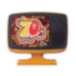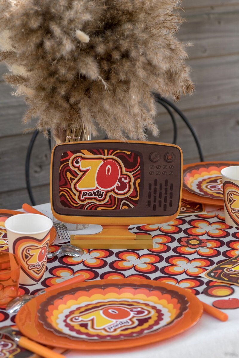 Virkelig sej dekoration i træ af et TV i retrostil, der viser den tidstypiske design. Dekorationen bliver et farveklatter på bordet og tilføjer charme til din tematiske dækning. Dekorationen er 22 x 18 cm stor.