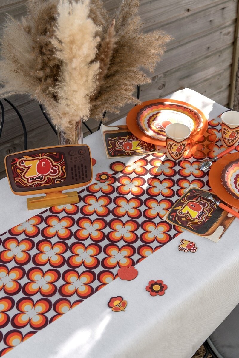 Bordsløber i retrostil, der med sit design straks får tankerne til at gå tilbage til 70'erne. Bordsløberen er perfekt, hvis du vil arrangere en hyggelig temafest eller et disco.