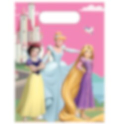 6 slikposer i plast med et smukt motiv af Disney-prinsesserne Snehvide, Askepot og Rapunzel foran et eventyrligt slot. Perfekte til at fylde med slik og små overraskelser, som børnene kan tage med hjem efter fødselsdagen med Disney Prinsesser-tema.