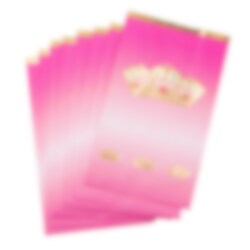 8 stk papirposer med pink-ombre farve og guldfolierede prinsessekroner som er perfekte at bruge til slik og andre overraskelser til fødselesdagsfesten. Poserne er 20 x 12 cm.