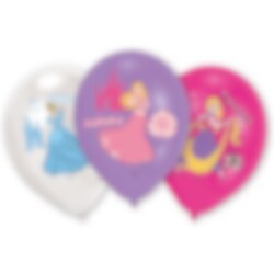 6 farverige balloner med prinsessemotiv. Udsmyk festlokalet med disse for at skabe en sjov stemning. Ballonerne er ca. 28 cm i diameter, når de er oppustet.
