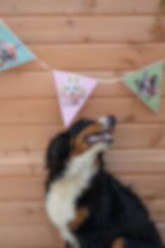 Sjov flagguirlande med festlige hundemotiver, som passer perfekt til fødselsdagsfest, fest og andre fejringer, hvor dekorationerne gerne må være iøjnefaldende. De farverige flag med forskellige hunde i festhatte giver rummet et legende udtryk og hjælper med at skabe ægte feststemning.