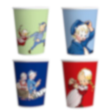 8 stk. farverige krus i temaet Emil fra Lønneberg. Krusene er 10 cm høje og rummer 200 ml.