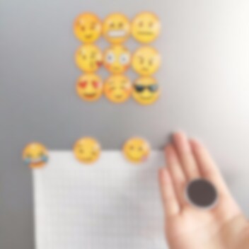 Emoji-køleskabsmagneterne kommer i 5-pack og indeholder runde magneter med forskellige Emoji-motiver. Køleskabsmagneterne leveres usorterede, hvilket betyder, at de emojis, du modtager, vil være en overraskelse. Hver emoji er ca. 3 cm i størrelse og er en sjov gave og en måde at udtrykke følelser på dit køleskab på.