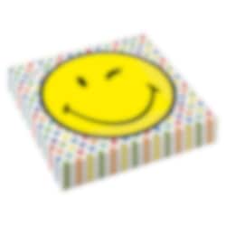 16 servietter med fine og farverige Smiley motiv. Meget dekorative til din borddækning når du holder smiley-fest. Servietterne er i 2 lag og er ca. 33 x 33 cm når de er udviddet.