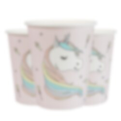 10 super søde papkrus i lyserød med et motiv af en enhjørning fra enhjørningetemaet. Krusene er ca. 9,7 cm høje og har et rumindhold på 270 ml.