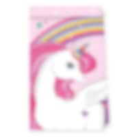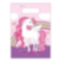 6 slikposer af plast med et smukt enhjørningemotiv i fine pastelfarver. Perfekte at fylde med slik, små legetøj eller sjove overraskelser, som børnene kan få med hjem efter fødselsdagen. ✔️ Størrelse: ca 25 x 17 cm