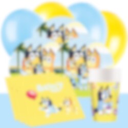 Denne komplette Bluey festpakke tilbyder alt, hvad du behøver for en sjov fødselsdagsfest. Pakken indeholder tallerkener (23 cm), papkrus (270 ml) og servietter (33 x 33 cm) til 8 eller 16 personer.