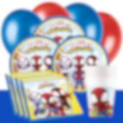 Denne komplette festpakke med Spidey inkluderer tallerkener (23 cm), papkrus (200 ml) og servietter (33 x 33 cm) til 8, 16 eller 24 personer.