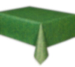 Dug til fodboldfesten eller en anden passende lejlighed. Dugen er lavet af plastik og hele dugen har farver og mønstre som en smuk græsplæne. Dugen er 137 cm x 243 cm stort.