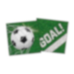 Gør borddækningen ekstra festlig med disse servietter med fodboldmotiv. Den grønne baggrund, fodbolden og teksten GOAL! giver en legende og sporty følelse, som passer perfekt til fodboldfødselsdage, kampfejringer og fødselsdage med sportstema.