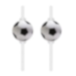 4 stk papsugerør med motiver af fodboldbolde. Sugerørene er ca. 21 cm lange, og motiverne er ca. 6,5 cm i diameter.