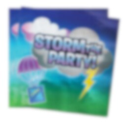 16 stk. farverige servietter med teksten "Storm the Party!" på den ene side. Perfekt tilbehør til festen med Battle Royal som tema. Servietterne er i 2 lag og er ca. 33 x 33 cm når de er udvidet.