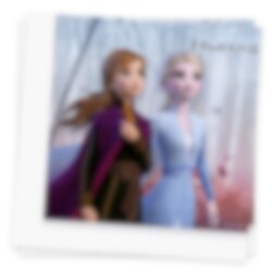 20 servietter med hvide kanter og et flot motiv fra Disneys film Frozen 2. Bemærk at servietterne har forskellige motiver på hver side. På den ene side af servietterne er der et motiv af søstrene Anna og Elsa, og på den anden side er der et motiv af Olaf. Servietterne er i 2 lag og er ca. 33 x 33 cm store udvidet.