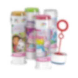 Sæbebobler hvor flasken har farverige motiver fra Gabby's Dollhouse. Sæbebobler er populære at få som gave på børnefødselsdage, og det er sjovt at blæse bobler sammen. Prisen er per stykk og flasken indeholder 60 ml.