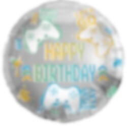 Super flot folieballon med utroligt fedt gamer motiv og teksten "Happy Birthday". En sjov dekoration til at tage med til en fest med gaming som tema. Ballonen er ca. 45 cm i diameter oppustet og oppustes med helium eller luft, vi anbefaler, at du bruger en ballonpumpe, hvis du vil fylde den med luft.