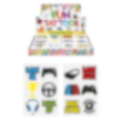 6 tatoveringer med seje gaming motiver. En sjov ting at lægge i slikposen, når der er fødselsdag eller fest med computerspils tema. Bemærk at tatoveringerne findes i to forskellige ark og sælges individuelt og usorteret.