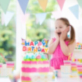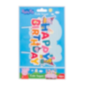 Cake topper af pap med teksten "Happy Birthday" og mange søde motiver fra Gurli Gris. Højde ca. 13 cm.