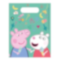 6 slikposer med en flot mintgrøn farve, med et farverigt motiv af Gurli Gris og hendes ven Suzy fra TV-serien Peppa Pig - Gurli Gris. Fyld poserne med godter og overraskelser, og del dem ud til dine venner under festen.