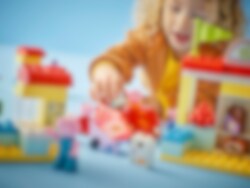 Hjælp piger og drenge fra 2 år med at lege rollelege om en indkøbstur til butikken med LEGO® DUPLO® legetøj Gurli Gris i supermarkedet (10434). Små børn tager del i familiens rutiner, når de kører afsted for at købe mad i den ikoniske røde bil fratv-serien. Bygge- og ombygningslegetøjet til de mindste er fyldt med tilbehør, der sætter gang i den kreative rolleleg. Med 4 figurer – Gurli Gris, Gustav, Mor Gris og Far Gris – kan tumlinger både lege, at de er forældrene og børnene. Børnehavebørn vi l genkende elementer fra virkelighedens købmandsbutikker, såsom selvscanningskassen, indkøbsvognen og køleskabet. LEGO DUPLO Gurli Gris læringslegetøjet hjælper små børn med at udvikle færdigheder, når de tænker logisk, mens de udspiller shoppingture inspireret af tv-serien. Familier kan også udforske følelser gennem leg. Den relaterbare scene vil sætte gang i samtaler mellem voksne og de mindste om adfærd i butikken og – måske endnu vigtigere – hvem der får lov til at skubbe vognen!