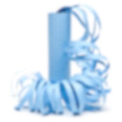 Serpentiner i lyseblå farve. Serpentinerne er lavet af papir og på rullen er der 20 mindre ruller med serpentiner, der er 7 mm brede og 4 meter lange.