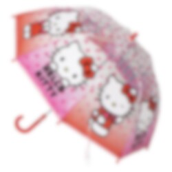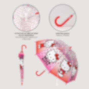 Gør regnvejrsdage ekstra charmerende med denne søde børneparaply med Hello Kitty! Paraplyen har en diameter på ca. 71 cm og er fremstillet af slidstærk PoE og glasfiber. Den har 8 ribber og åbnes manuelt. Det farverige design med Hello Kitty gør paraplyen til en favorit blandt alle små fans af den elskede karakter.