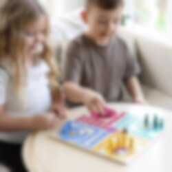 Spillet er lavet i træ og indeholder spilleplade, 16 brikker i fire farver, en terning og spilleregler. En hyggelig familieaktivitet fyldt med spænding og grin.