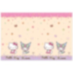 Smuk dug af plast med motiver af Hello Kitty og Kuromi. Dugen er 120 x 180 cm stor.