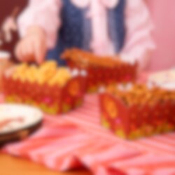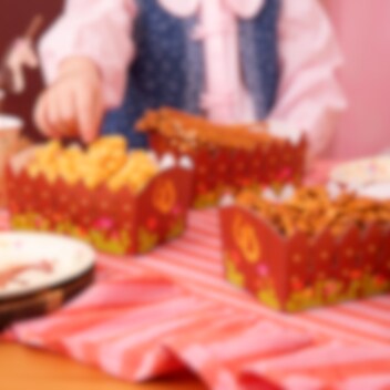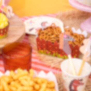 Gør klar til en hyggelig hestefest med disse søde snackbokse i træhegnsdesign. Med detaljer som hestesko, blomster og landlig charme er de perfekte til chips, popcorn eller frugtstykker til et staldinspireret børnebord. Boksene er lavet af pap og måler 15 x 10 x 7,5 cm – både dekorative og praktiske.
