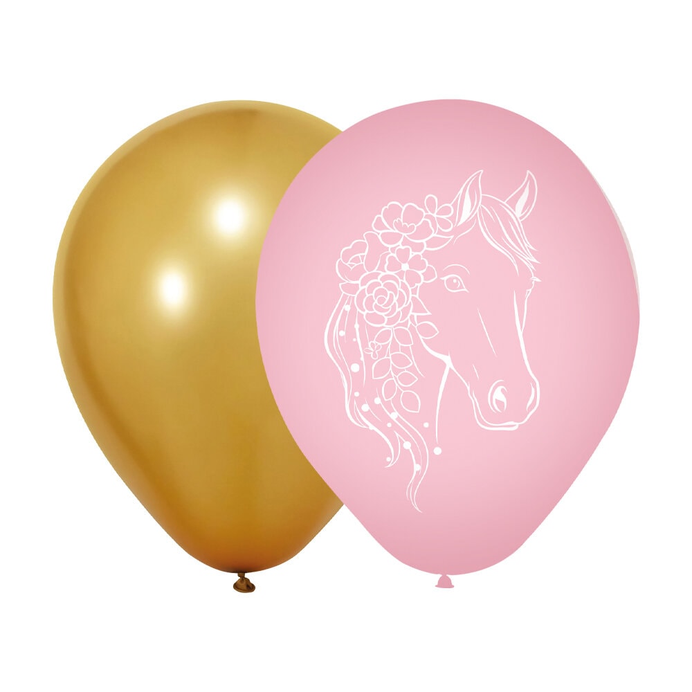 Dæk op til en fin hestefødselsdag med disse charmerende paptallerkener med smukke hestemotiver. Tallerkenerne har to forskellige designs i bløde nuancer, én med en hvid hest og én med en brun hest, begge dekoreret med blomster, der giver borddækningen en drømmende og legende følelse.