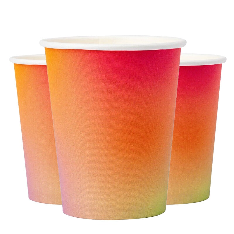 8 stk. tallerkener i smukke varme pastelfarver. Tallerkenerne er 23 cm i diameter og er lavet af pap. Inviter dine venner til en sjov fødselsdag og byd på kage på tallerkenerne.