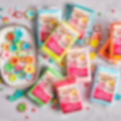 Ingredienser: sukker, glukosesirup, vegetabilsk fedt (palmekerne, palmeolie), sukkersirup, fugtighedsbevarende middel (E422), fortykningsmiddel (E415, E466), emulgator (E471), citronsyre (E330), konserveringsmiddel (E200), aroma, farve E120. E120 kan have en negativ indvirkning på aktivitet og opmærksomhed hos børn.