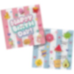 20 servietter med sødt Kawaii-motiv, som gør borddækningen ekstra farverig og sjov til børnefødselsdagen. Servietterne er dekoreret med søde illustrationer af frugter, snacks og lækkerier sammen med teksten Happy Birthday, hvilket passer perfekt til en fødselsdag i Kawaii-tema.