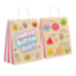 De er ideelle at fylde med slik, småt legetøj og andre små overraskelser, som gæsterne kan tage med hjem efter fødselsdagen. Slikposerne er lavet af papir og måler 27 x 20 cm.