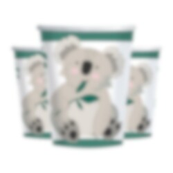 8 hvide og grønne papkrus, med motiv af en sød koala. Brug disse til koala- eller dyrefesten sammen med matchende bordpynt. Krusene er ca. 10 cm høje og rummer ca. 250 ml.