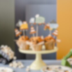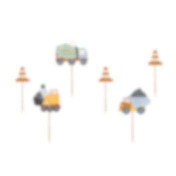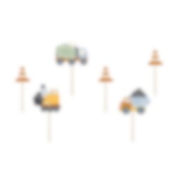 Dekorer dine bagværk med disse cake toppers med motiv af forskellige seje køretøjer og tilbehør. Hver dekoration er mellem 4-7 cm stor og lavet af pap.