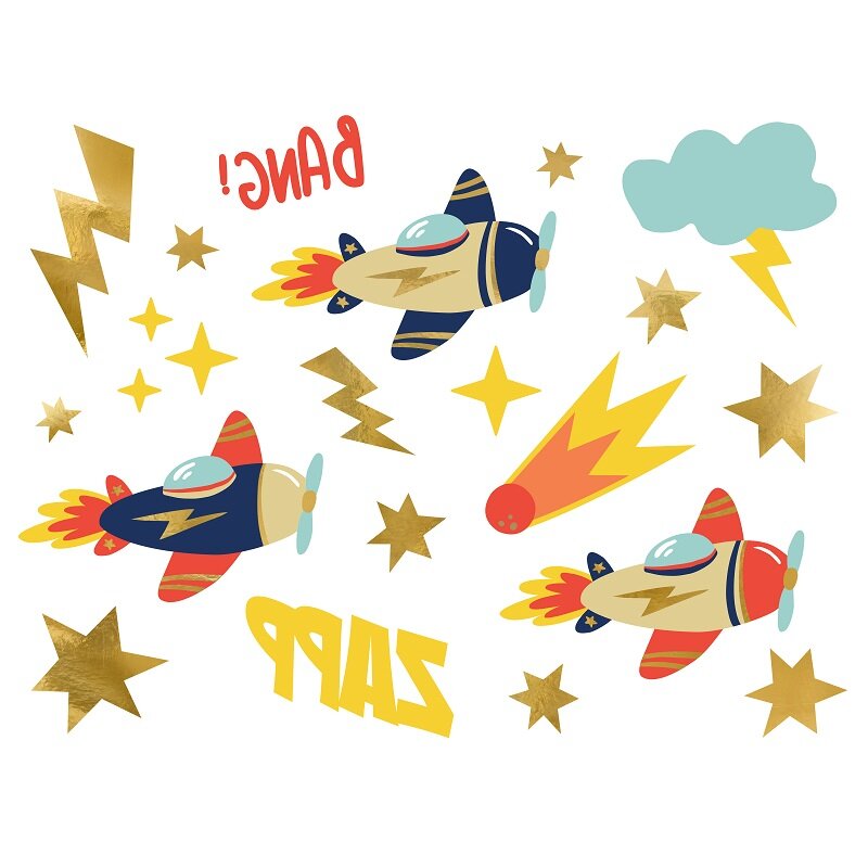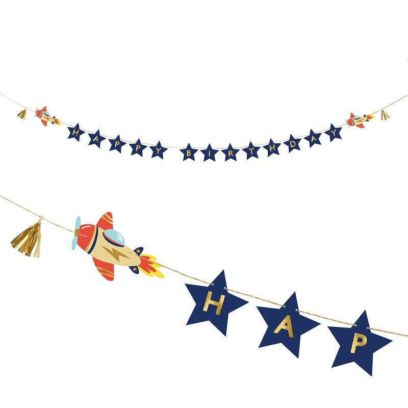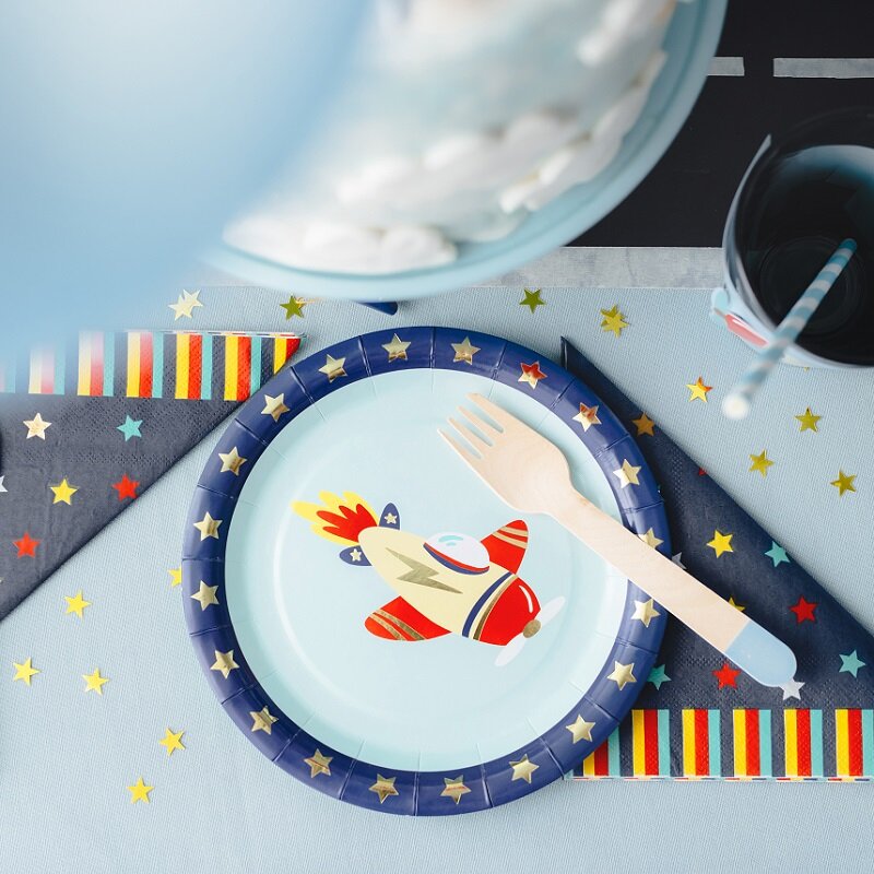 6 stk. tallerkener i to nuancer af blåt med motiv af et fly og dekorative stjerner. For dem, der er interesseret i fly, er disse tallerkener et oplagt valg til en temafest med flytema.