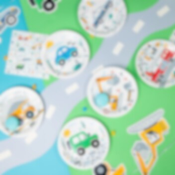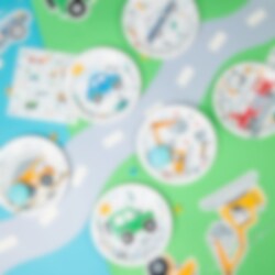 6 stk. paptallerkener med motiv af farverige køretøjer, perfekte til en fødselsdag med køretøjstema! Tallerkenerne har en diameter på cirka 18 cm.