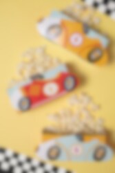 Gør børnefødselsdagen endnu mere spændende med disse seje snackbokse i racerbil-tema. Hver pakke indeholder tre bokse i tre forskellige modeller, perfekte til at servere snacks, slik eller små overraskelser til dine gæster. Størrelsen på boksene er 7,5 x 17 x 7,5 cm. Fremstillet af pap.